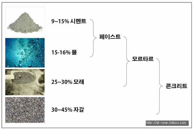 시멘트가 물과 반응하여 굳어지는 수화반응(水和反應)을 이용하여 골재(骨材)를 시멘트풀(시멘트를 물로 개어 풀처럼 만든 것)로 둘러싸서 다진 것.