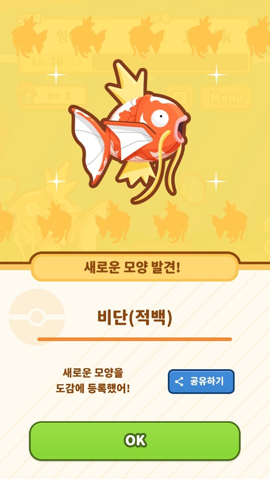 잉어킹 레벨 결정됨.