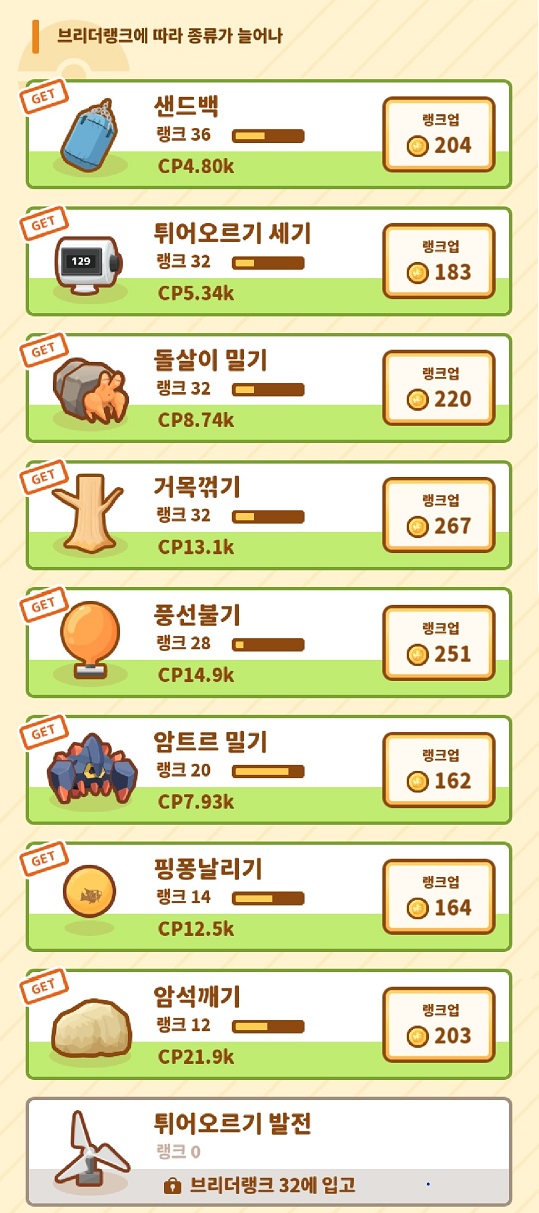 과일 및 훈련 레벨을
