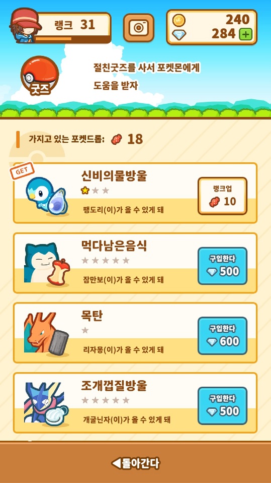 과일 맥여서 잉어킹 키움